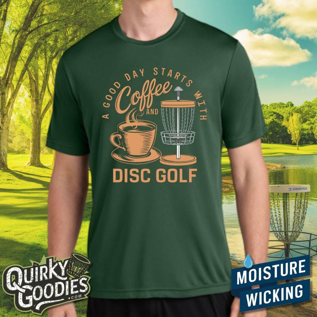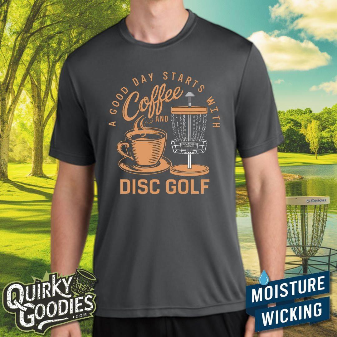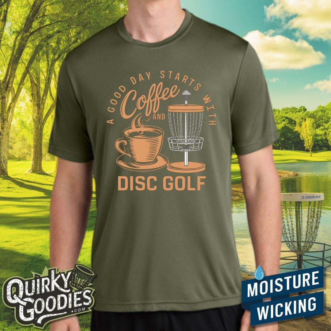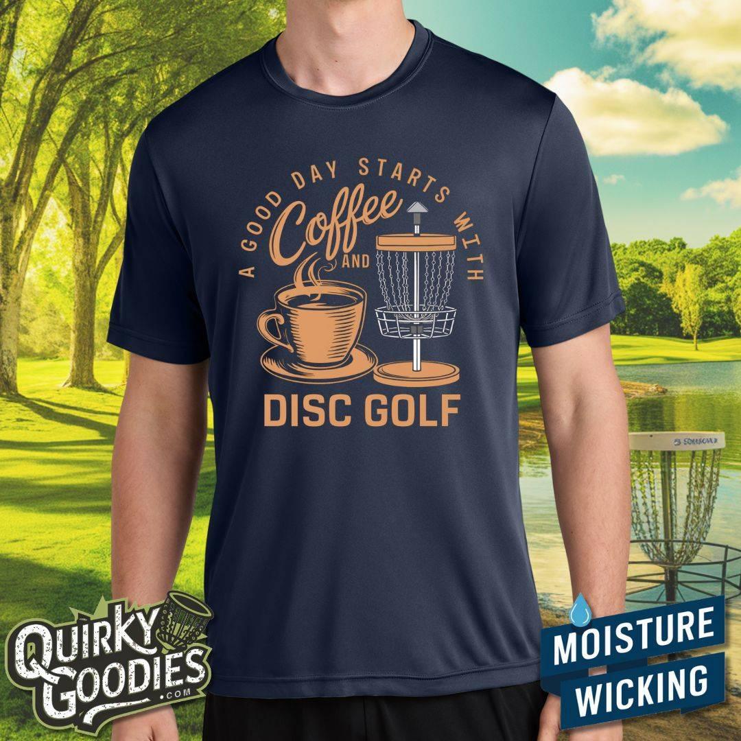 A Good Day Starts With Coffee And Disc Golf - Sweat-Wicking T-Shirt