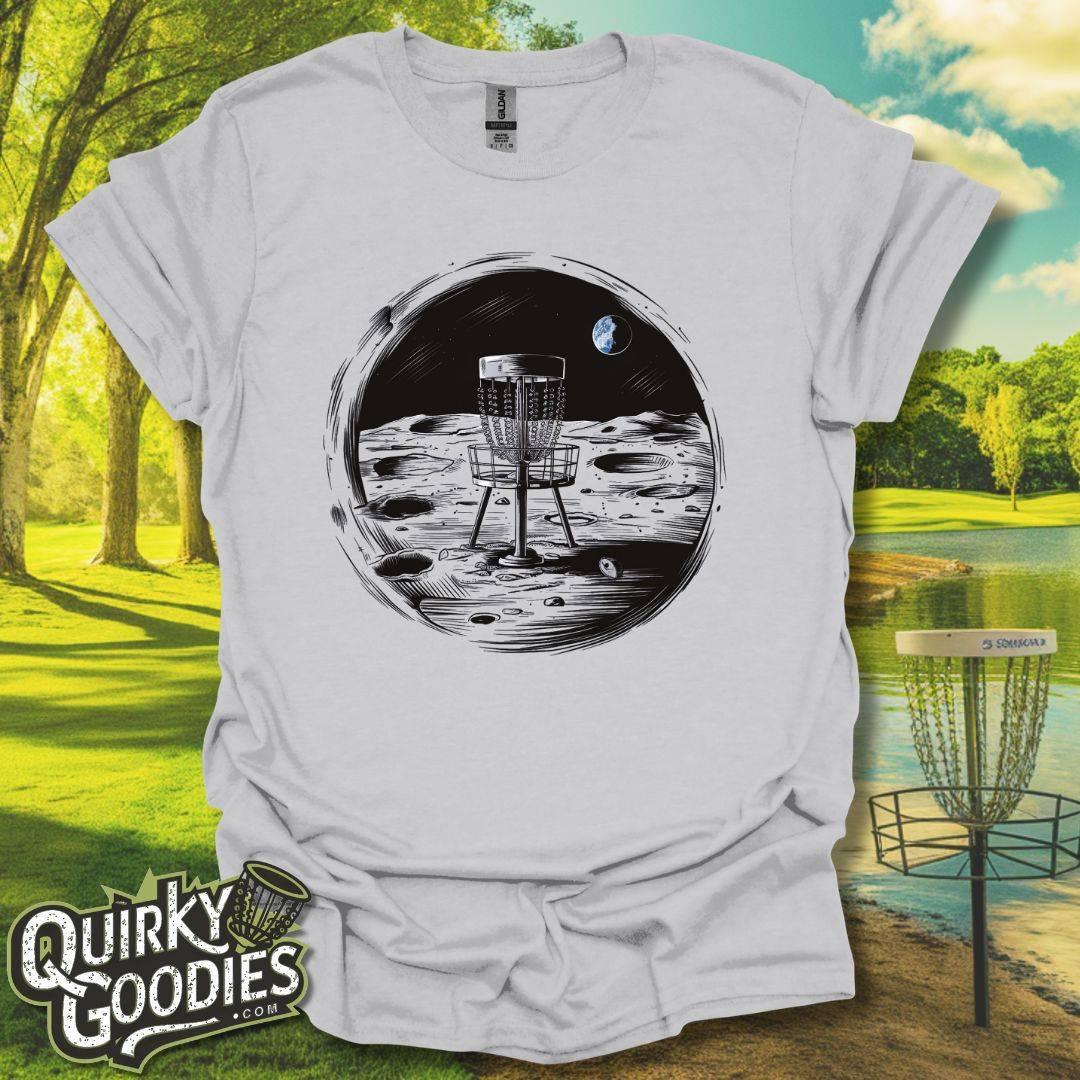 Disc Golf Basket on Moon T-Shirt
